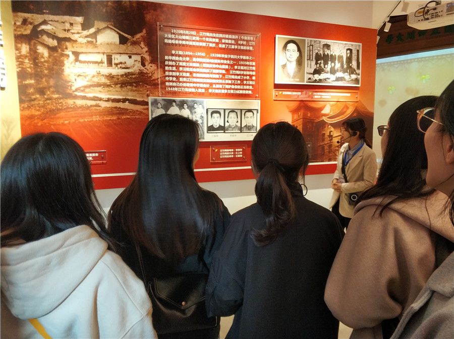 纪念馆所在院落,以雕塑和浮雕的形式,再现了江姐在校读书期间的学习生活情况,以及同时期川大进步学生团体开展革命活动的场景。在讲解员的介绍中,浮雕中的故事逐渐铺成一幅幅壮丽的革命画卷,革命志士们为革命事业奋不顾身的牺牲奉献精神使观者深受感动。