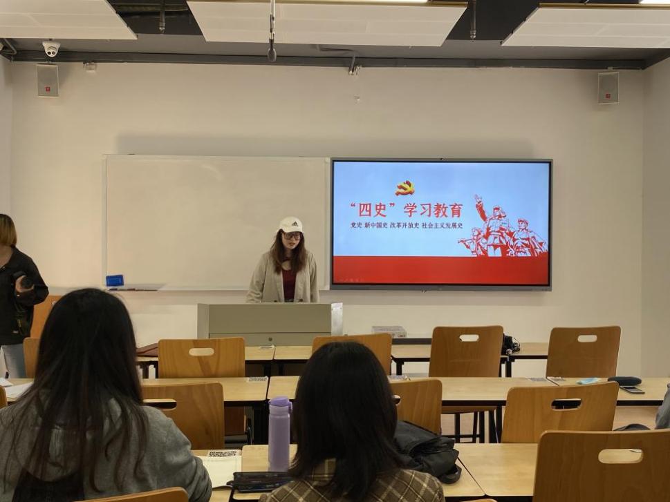 刘慧琳与沈紫晴同志以“党史是中国共产党的领导不断走向成熟的实践史”“新中国史是中国共产党推进建设新中国的实践史”“改革开放史是中国共产党推进社会主义制度自我完善和发展的实践史”“中国共产党是引领世界社会主义发展的重要政治力量”“学好‘四史’,牢记初心使命”五个主题展开对“四史”的学习汇报,他们讲到:“历史是最好的教科书,每一次从历史的时间轴上走过,心中都能多增添一份信念。”