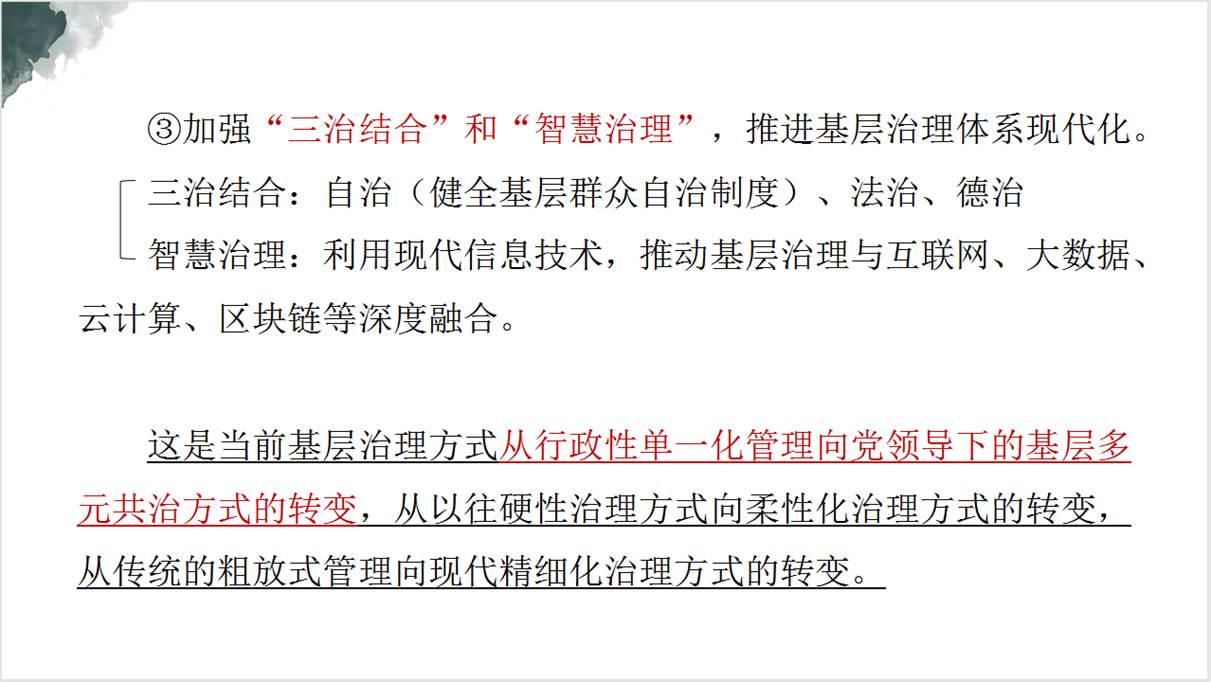首先,李秀祺同志带领大家的思绪对相关概念进行辨析理解,引出对基层治理重要性的阐述——基层治理是国家治理的基石,统筹推进乡镇(街道)和城乡社区治理,是实现国家治理体系和治理能力现代化的基础工程。在对《意见》主要结构和内容的分析整理中,李秀祺同志强调有三点非常重要:一是坚持党对基层治理的全面领导,二是为基层政府放权赋能,推进基层治理能力现代化;三是加强“三治结合”和“智慧治理”,推进基层治理体系现代化。接着魏雨濛濛同志结合“7·20郑州特大暴雨”的具体案例,将基层治理概念与现实生活相结合,认为这次突发事件暴露出基层治理体系仍然存在不少工作盲区,但针对这些问题,领导班子及各部门也及时作出自我批评,迅速制定出整治措施。理论与实际的结合让支部同志们对基层治理以及《意见》中具体方针有了更深刻的认识,对于之后大家选调考公深入基层工作也有较多帮助。