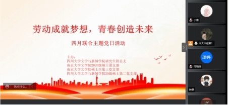 为庆祝五一国际劳动节,引导青年学生崇尚劳动、尊重劳动、辛勤劳动、诚实劳动、创造性劳动,学习以实干兴邦的劳动精神,2022年4月28日,澳门网投官网研究生团总支、2020级硕士第二党支部联合南京大学文学院硕士生第三党支部、南京大学文学院2020级硕士团支部开展“劳动成就梦想,青春创造未来”的主题党日活动。