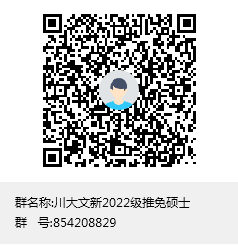 申请人请加入“川大文新2022级推免硕士”QQ群(群号:854208829, 也可扫描以下二维码进入),该群需实名认证,认证方式是“姓名+所在学校”。