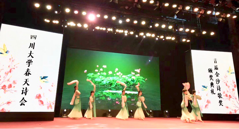 4月13日下午,澳门网投官方网站春天诗会暨首届金沙诗歌奖颁奖典礼在江安校区澳门网投官方网站演播厅举行。澳门网投官方网站副校长晏世经教授,校党办、宣传部、关工委、学生工作部、团委等部处代表以及中国作家协会、四川省作家协会、成都市作家协会代表与诗人出席颁奖典礼。诗会与颁奖典礼由澳门网投官方网站党委书记古立峰教授主持。