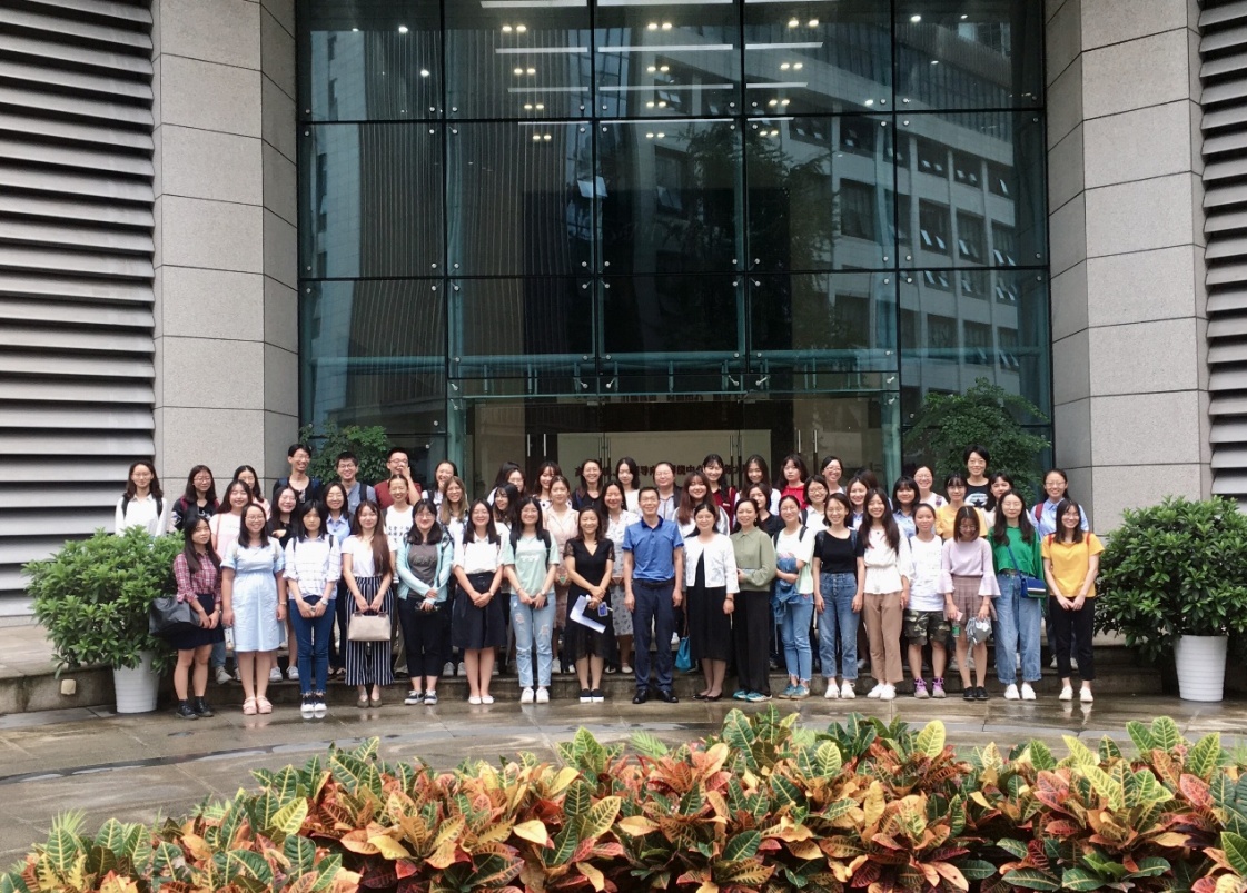 参与实习的师生在四川日报报业集团大厦门前合影