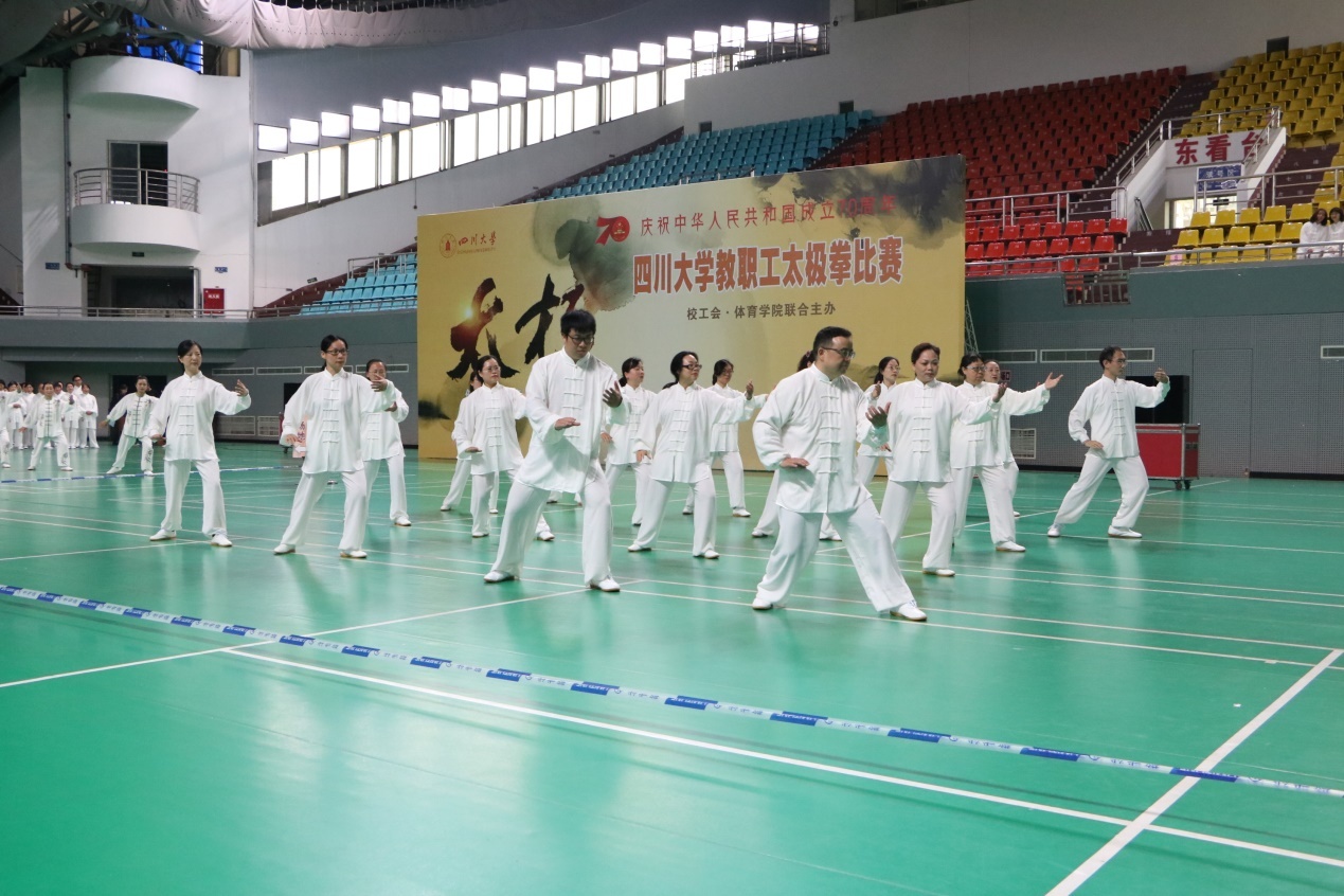 10月18日下午两点,“健魄铭志·修身强国”——澳门网投官方网站庆祝新中国成立 70 周年教职工太极拳比赛在望江校区体育馆二楼主馆隆重举行。本次比赛由澳门网投官方网站学工会、澳门网投官方网站体育学院联合主办,旨在庆祝新中国 70 周年华诞,弘扬中华传统文化,传承太极文化精髓,倡导广大教职工走出办公室、走上运动场,丰富校园文化生活,展示我校教职工健康向上的良好精神风貌。澳门网投官网教职工在此次比赛中荣获三等奖。