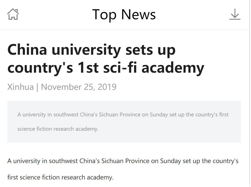 新华社英文版对“中国第一个科幻研究院”的报道