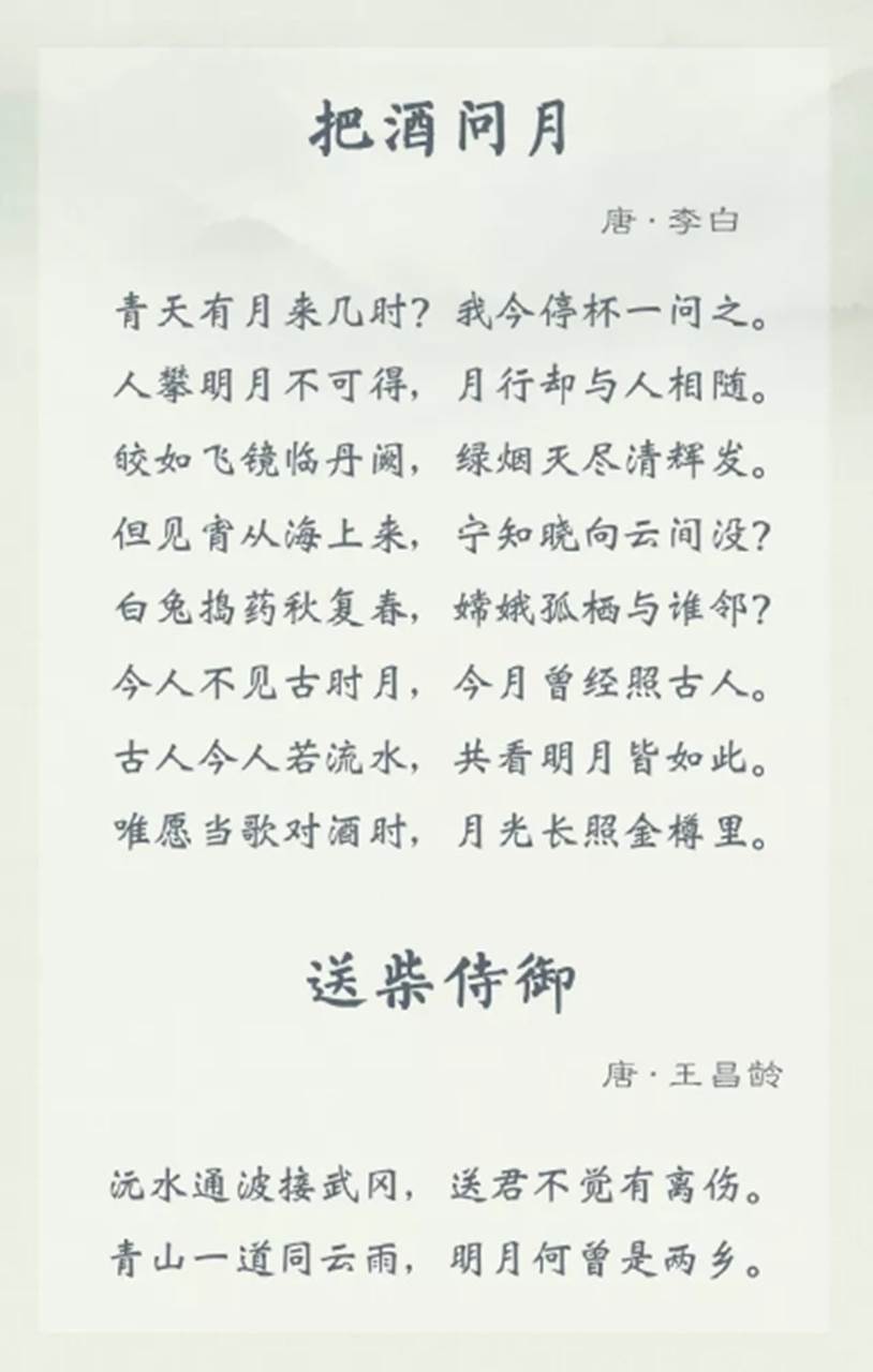 “峨眉山月半轮秋,影入平羌江水流。夜发清溪向三峡,思君不见下渝州。”一千两百多年前的诗句今日读来,诗人那“仗剑去国,辞亲远游”的情感依旧喷涌而出,这就是中华经典的魅力。