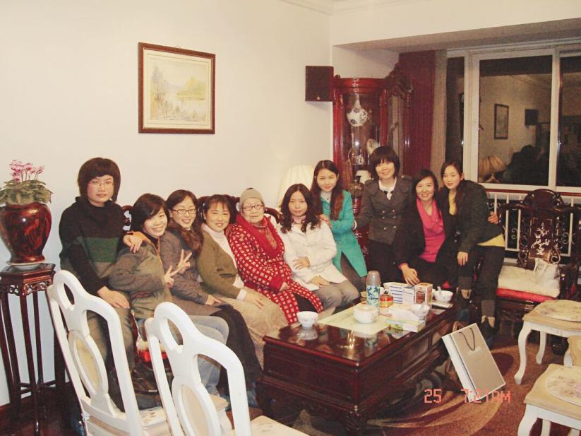 (左四为李苓老师,左五为李苓老师的母亲,左六为程婧波)
