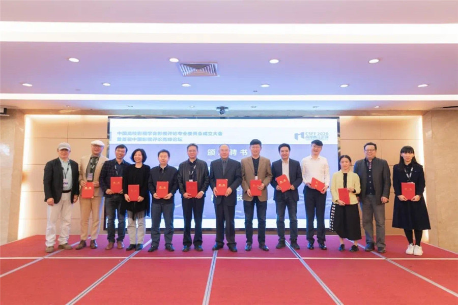 胡智锋教授(右二)、周星教授(左一)为中国高校影视学会影视评论专业委员会
