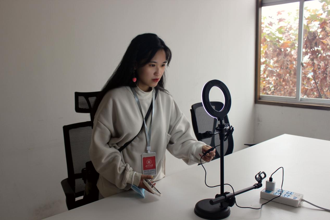 活动的第二站是万物联播直播城。工作人员带领同学们参观了直播间,并就直播规范、直播风格等问题为大家进行了讲解。