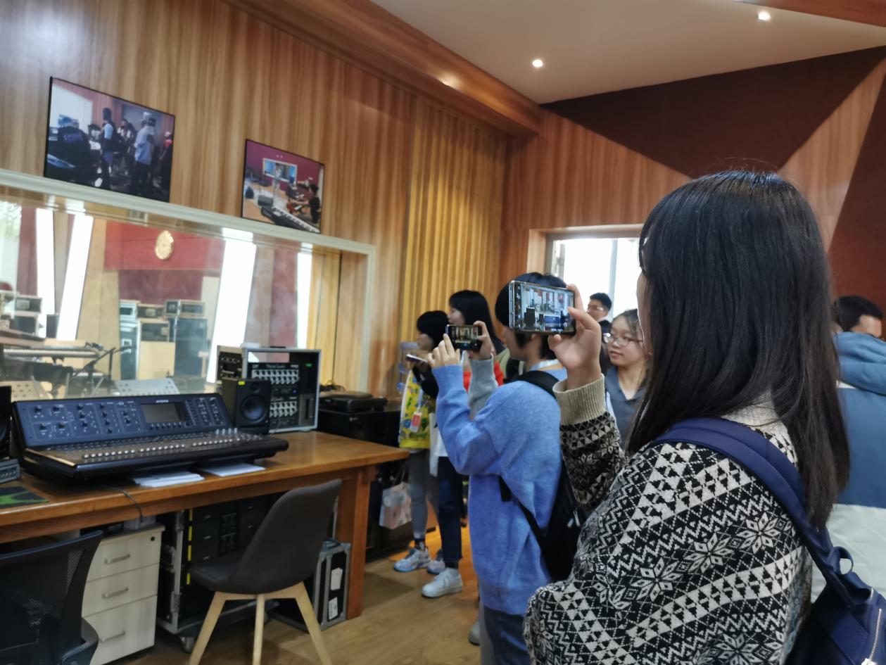 同学们参观录音室