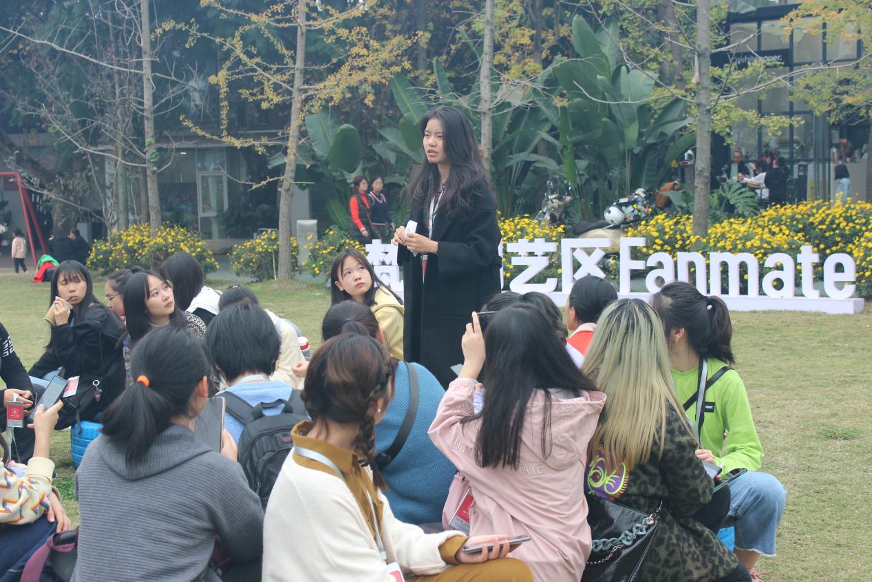 接下来,大家抵达第三站——云城会文商创意产业园,来到园区2020年度创新创业示范单位大成企业,了解其业务范围、运营模式、企业文化以及营销方式。大成企业负责人马晶从自身经历出发,告诉同学们要注重创新与品牌打造,并且要有良好的职场和创业心态,善于发现问题和解决问题。中农遇善文旅产业集团创始人刘潇董事长也来到现场,为同学们分享了内容产业为王的新时代文旅业,勉励同学们带着创意学习体验,用专注和专业创造属于自己的美好人生。