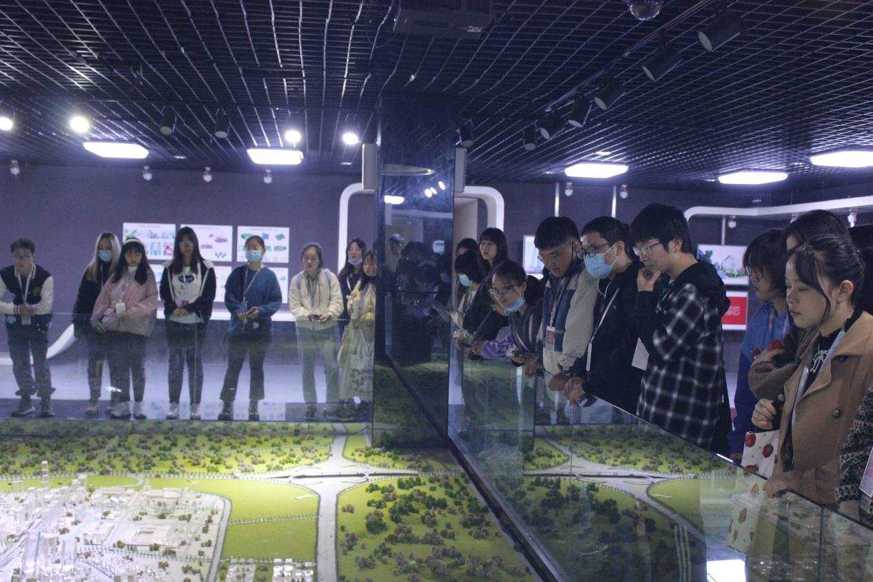同学们观看龙潭总部新城平面模型