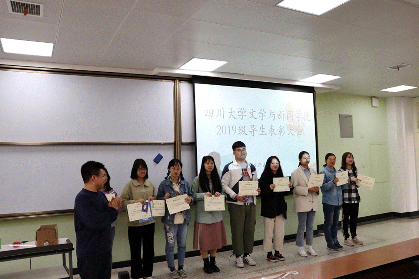 4月13日下午,澳门网投官网2019级导生表彰大会在江安校区第一教学楼B座301举行。2020级本科生辅导员胡余龙老师、兼职辅导员王一冰老师等嘉宾出席大会,2019级全体导生参加本次大会。