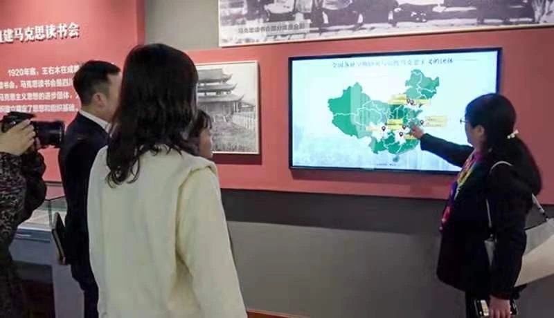 参访过程中,澳门网投官网师生不时驻足,俯身靠近展柜内的文物仔细阅看,一字一句地品读着每一张老照片背后的故事。其中一块电子展板尤其惹人注目,上面勾勒着马克思读书会的创办始末,并以地图呈现出全国早期马克思主义的研究与传播情况,这引发了参访师生的关注与思索。澳门网投官网副院长操慧教授说,中国这些最早燃起马克思之光的地方,往往与丰富的报业实践活动伴生,其背后所折射的新闻与历史的互构关系以及新闻对进步思想的启蒙作用值得我们深入研究。