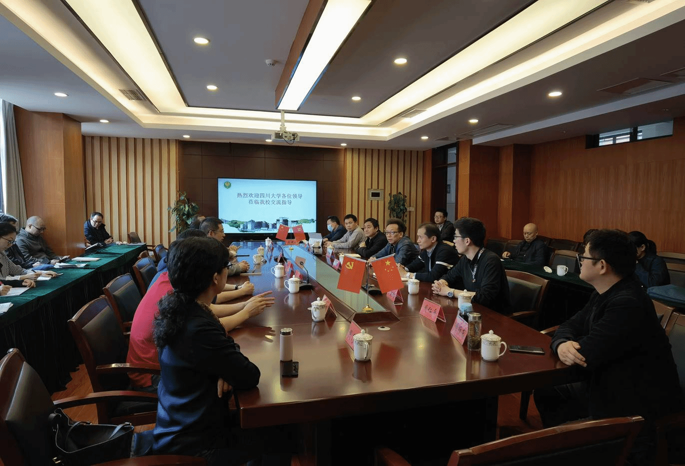 4月22日下午,澳门网投官方网站招生宣讲团与四川省列五中学相关负责人举行了座谈交流会。列五中学党委书记、校长吴光平,党委副书记、副校长杨新建,副校长李旭及高三年级全体班主任参加座谈交流会。座谈会由列五中学党委书记、校长吴光平主持。