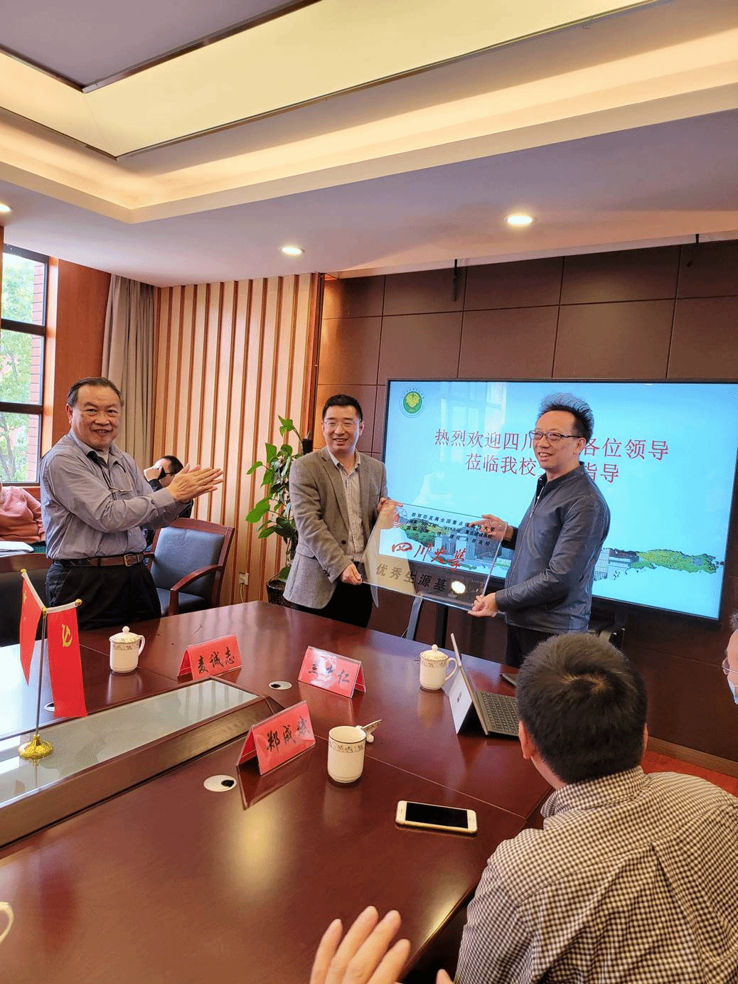 座谈会最后举行了优质生源基地的授牌仪式,廖爱民副主任代表学校向列五中学颁发了澳门网投官方网站优质生源基地的基地的牌匾。