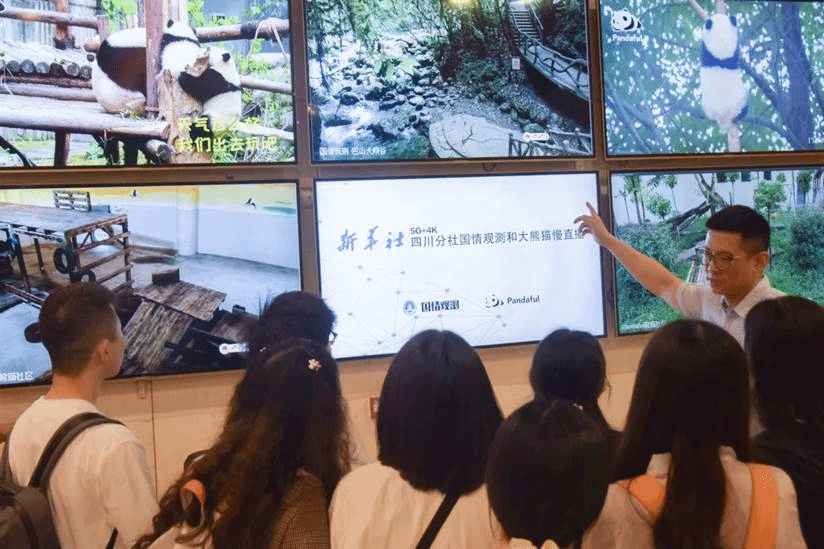 新华社四川分社音视频部副主任萧永航介绍新华社四川分社开通的大熊猫慢直播