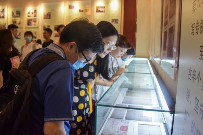 参访师生阅看社史展柜
