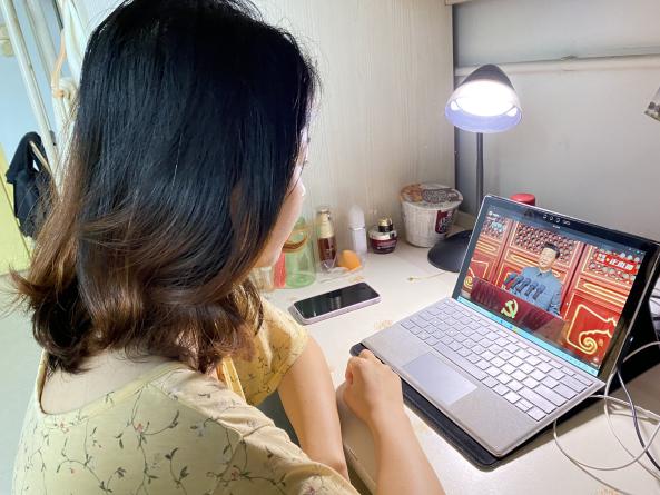 澳门网投官网党委书记古立峰教授,院长李怡教授,副院长胡易容教授、周维东教授、操慧教授,院工会主席罗梅研究员,学院党政办主任银浩和澳门网投官网各教研室主任等老师在澳门网投官网311办公室观看直播。澳门网投官网2020级硕士第三党支部和第四党支部的党员、入党积极分子代表在文科类一区116教室认真观看大会直播。澳门网投官网其他老师与各年级学生在宿舍、图书馆、教室、办公室及其他公共场所通过手机、电脑、平板等电子设备认真收看大会直播。直播结束后,澳门网投官网党员师生纷纷发表了自己的观看感想与心得。