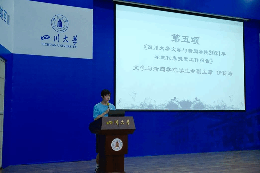 澳门网投官网学生会副主席伊靳涛作学生代表提案工作报告