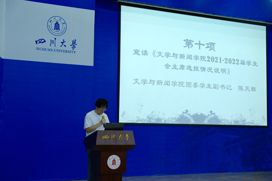 澳门网投官网2020-2021届团委学生副书记陈天麟宣读学院学生会主席选拔情况说明