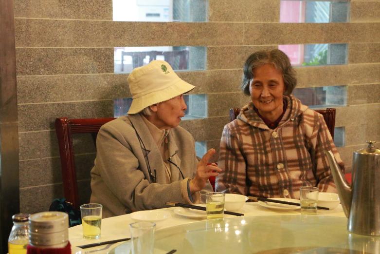 上午10点,参会老师陆续到来,有些老师在路上便相遇,结伴而来,相谈甚欢;有些老师在志愿者同学的搀扶下步入会场,虽行动迟缓,但精神矍铄。幸逢良宴会,况是清秋日,各位老教师们在九九重阳日当天相聚一堂,现场气氛亲切温馨。有的老师来不及坐下,站着便聊起天来,说到激动之处,也会近乎手舞足蹈。大家谈天说地,聊忘了年岁,也聊去了那衰柳寒蝉一片愁。