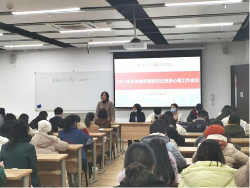 2021年12月1日中午,澳门网投官网“研究生班级心理会议”在文科楼一区109召开。澳门网投官网党委副书记张莹老师、文新嘤鸣坊负责人段化鞠老师、博士生辅导员吴光芬老师、2021级硕士辅导员王志华老师、2020级硕士辅导员雷子慧老师、2019级硕士辅导员陈羲老师以及研究生各班级心理工作负责人等80多人参加了会议。
