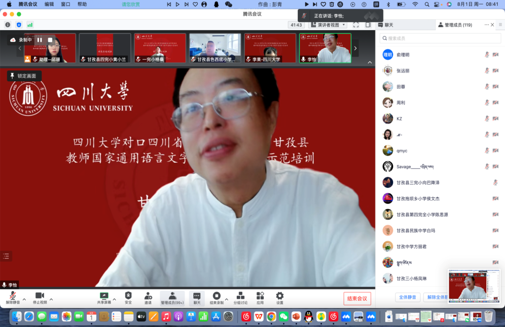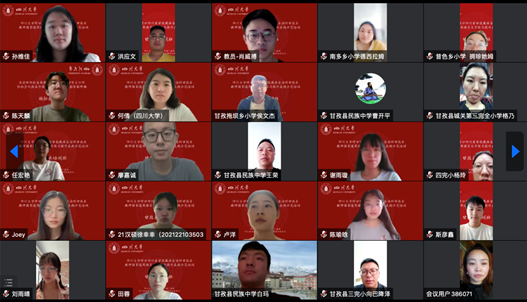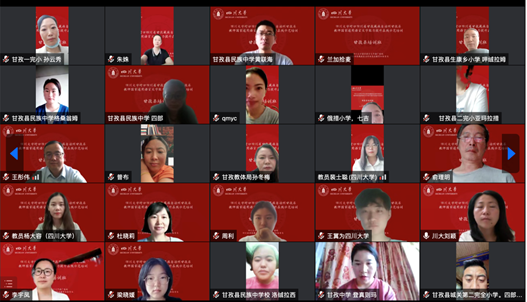 为深入贯彻党的十九大和十九届历次全会精神,落实全国语言文字会议和教育部党组关于教育脱贫攻坚成果同乡村振兴有效衔接的工作部署,2022年8月1日上午8点30分,澳门网投官方网站国家语言文字推广基地对口四川省甘孜藏族自治州甘孜县教师国家通用语言文字能力提升在线示范培训举行了线上开班典礼。出席此次典礼的嘉宾有我校人事处处长、国家语言文字推广基地常务副主任、语言文字工作委员会办公室主任吴尧教授,语言文字工作委员会办公室副主任朱莉老师,澳门网投官网院长李怡教授,我校国家语言文字推广基地执行主任雷汉卿教授,甘孜县教育和体育局股长孙冬梅,我校人事处副处长王彤伟教授等14位专家教师、20位学生教员及全体参训学员。开班典礼由澳门网投官网院长李怡教授主持。