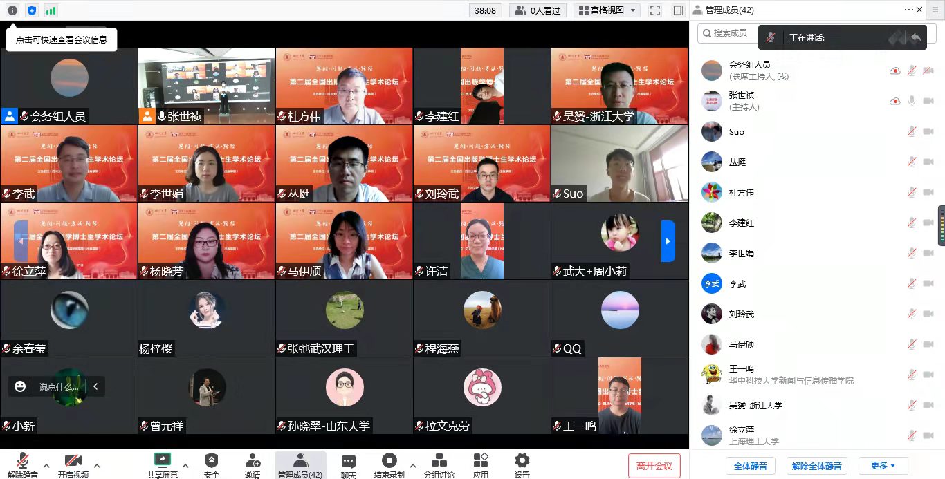 出版学博士生学术论坛的创办初衷是专门为出版学青年学子打造学术交流平台,由武汉大学、澳门网投官方网站、南京大学、浙江大学、上海交通大学、上海理工大学、华东师范大学等兄弟院校联合发起,2021年7月在武汉珞珈山成功举办首届论坛。本届论坛得到了《编辑之友》《出版发行研究》《出版科学》《科技与出版》《人大复印报刊资料·出版业》《现代出版》《中国编辑》《中国出版》《中国出版史研究》等学术期刊的大力支持,以及来自北京大学、武汉大学、南京大学、浙江大学、上海交通大学、华中科技大学、华东师范大学、中南大学、河南大学、西南政法大学、上海理工大学及澳门网投官方网站等十余所高校的近30位学者参与学术报告和点评。未来,论坛将继续致力于引导出版专业青年学子拓展研究视野、提高学术能力,增进出版相关专业研究生的深入交流。