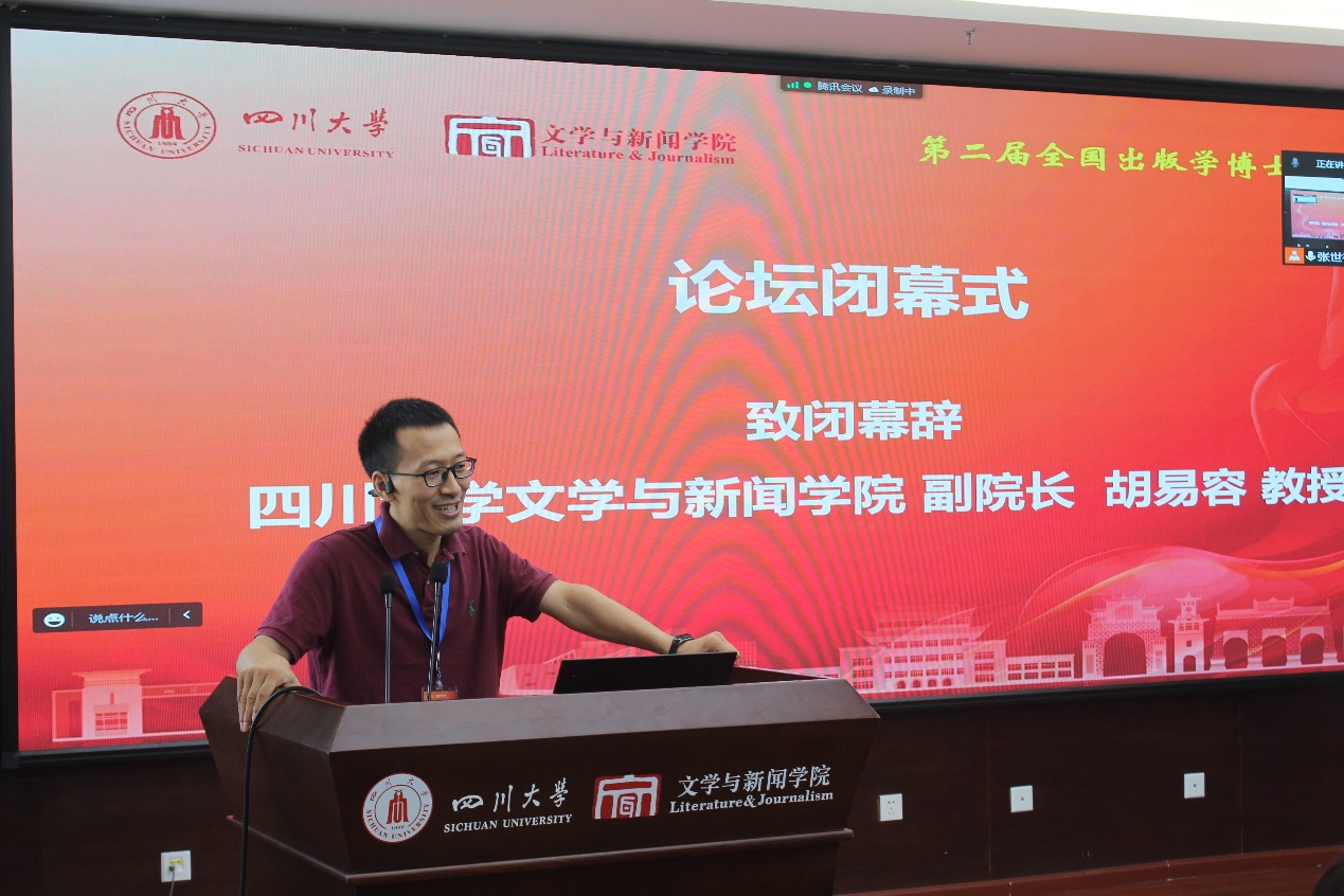 澳门网投官方网站副院长胡易容教授致闭幕词,他简要介绍了学院学科建设及科研育人的特色举措,以及学院出版学科的发展简况。他表示,博士生论坛这个学术交流平台对人才培养有着十分重要的促进作用,本届论坛的举办是川大出版学院落实打造人才培养新标杆的系列举措之一,并对出版学青年博士发出了邀请。