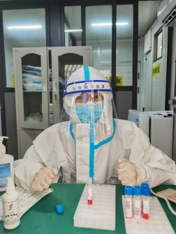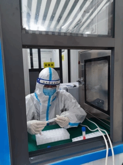 澳门网投官网张祖扬同学在核酸采样亭内工作