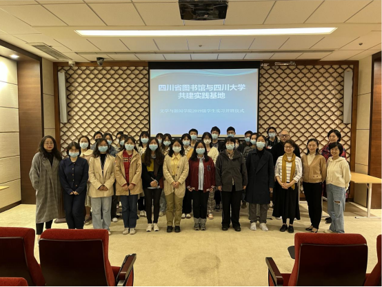 2022年10月10日,澳门网投官网师生赴学校共建实践基地四川省图书馆参加2019级学生集中实习开班仪式。来自澳门网投官网2019级汉语言文学、汉语国际教育、网络与新媒体、广告学等专业的24位本科生在澳门网投官网宋雯老师的带领下,走进四川省图书馆,开启了为期一个月的四川省图书馆实习活动。