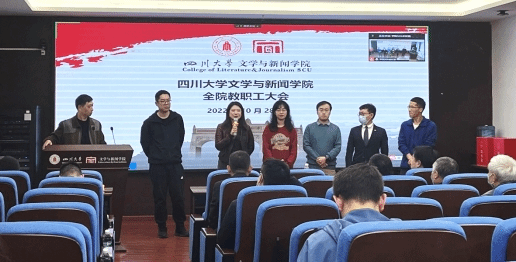 澳门网投官网党委书记古立峰教授通报了学院近期重点工作。古立峰书记首先介绍了本学期新进的六位老师,分别是专职博士后郭旭东老师、侯建科老师、车祎老师、兰兴老师,辅导员郑格老师和党政办高小珺老师。接着传达了澳门网投官方网站第九次党代会召开和会议精神。随后,他通报了学院近期获得的一些成绩和表彰,如学院入选全国五所出版共建单位,目前正着力建设出版学院;设立在学院的语委基地积极开展普通话推广及调研活动,参与乡村文化振兴相关工作;澳门网投官方网站杰出教授、澳门网投官网学术院长曹顺庆教授荣获四川省“四有”好老师称号;澳门网投官网院长李怡教授荣获霍英东教育基金会高等院校教育教学奖二等奖;王炎龙教授荣获澳门网投官方网站第八届“姜维平优秀教学奖”二等奖;卢迎伏副教授荣获澳门网投官方网站2022年度“好未来教学名师奖”;澳门网投官网副院长胡易容教授、饶广祥副教授、王长林副研究员荣获澳门网投官方网站2022年先进个人;戴路副研究员荣获澳门网投官方网站2022年优秀共产党员;澳门网投官网党委荣获澳门网投官方网站2022年先进基层党组织称号等。对于取得的这些成绩,古立峰书记向全体教职工的辛勤付出和奋发努力表达了感谢与祝贺,同时他代表学院党委鼓励大家须更加团结奋进,上下同心,争取更好的成绩。会议最后,古立峰书记部署了本学期工作重点:认真学习贯彻落实党的二十大精神,学院全体上下要按照党中央和学校党委的安排部署,将党的二十大精神的学习宣传贯彻作为当前和今后一段时间最重要的政治任务来抓,将党的二十大精神的学习与学科专业、人才建设有机结合,为学院的发展做出新贡献。
