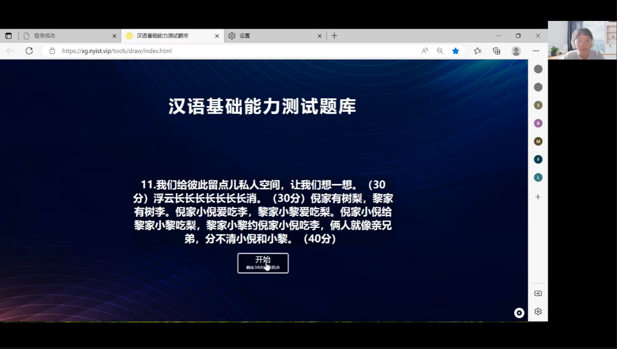 27日下午,本次培训的汉语基础能力测试环节正式展开。竞赛旨在以生动活泼的形式考查大家的通用语言文字能力。两百余名师生分为九组依次抽题进行测试,本次竞赛主要考查了师生使用普通话发音的准确度,连贯表达的流畅度、以及是否能够正确认识汉字的读音等。最后由专家评委进行评分,综合评选出一等奖30名、二等奖50名、三等奖80名。