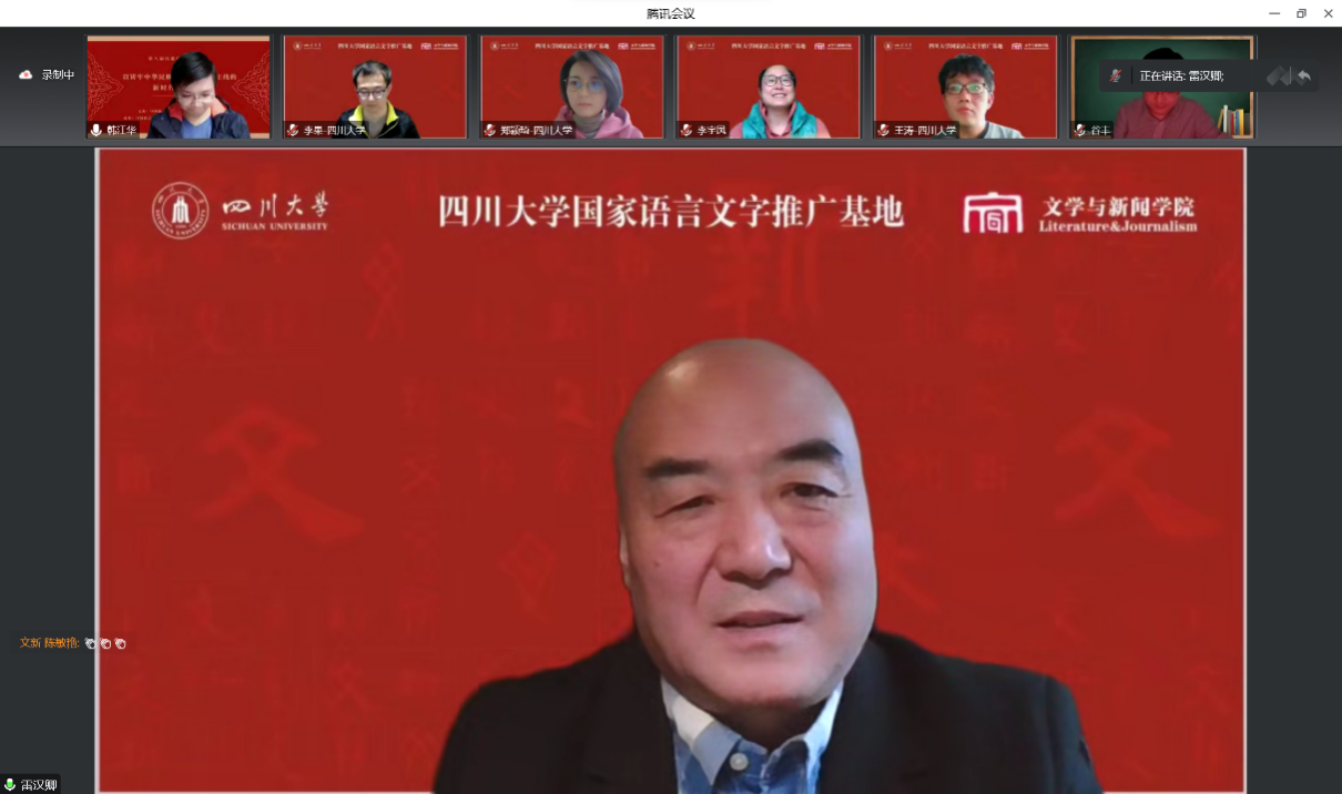 本次培训开班仪式由我校人事处副处长王彤伟教授主持。澳门网投官方网站国家语言文字推广基地执行主任雷汉卿教授、基地办公室主任李宇凤副教授,以及基地18位专家共同出席了本次培训开班仪式,在线参训学员达200余名。开班仪式上,王彤伟教授表示川大国家语言文字推广基地对此次培训的高度重视,并为全体参训学员介绍了本次培训的师资力量。