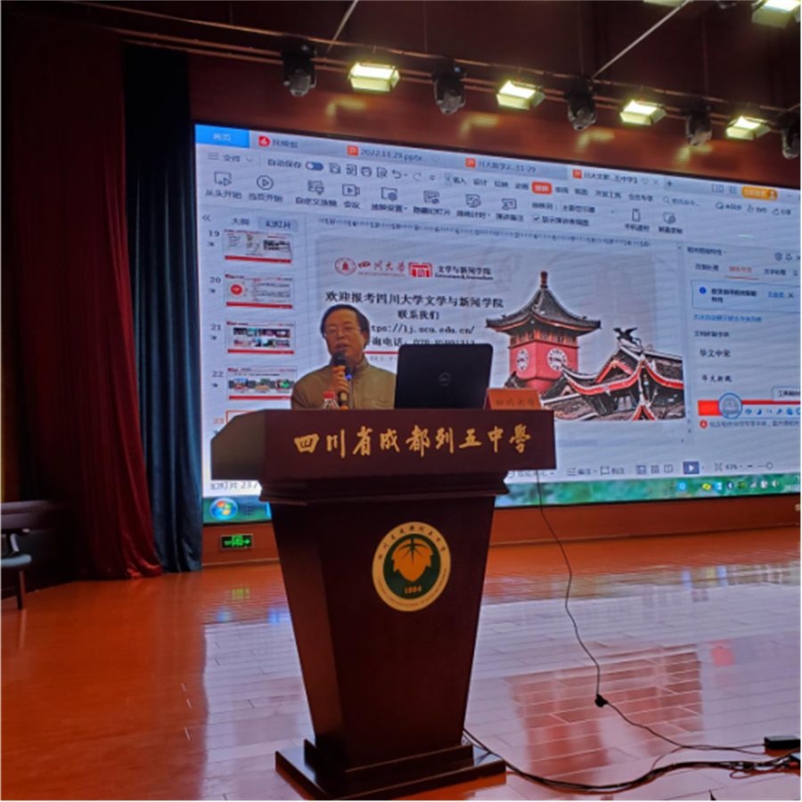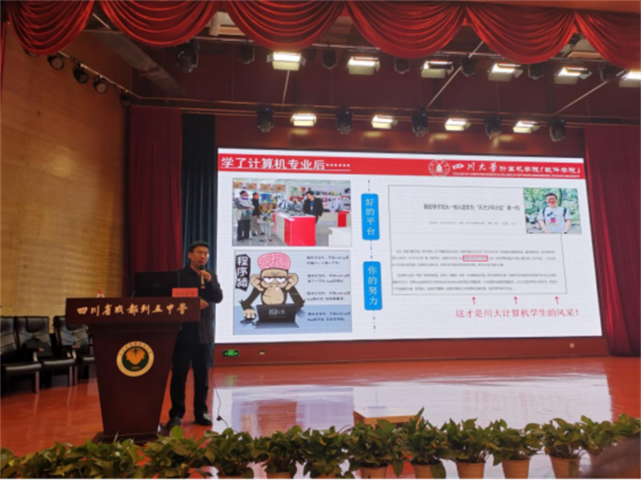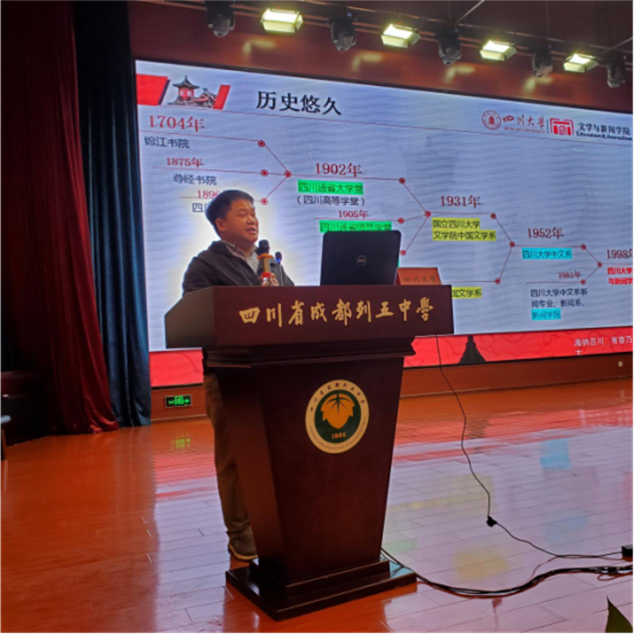 列五中学吴光平校长带领高三年级师生全程参加了此次宣讲会,现场气氛热烈。及时的交流与沟通,不仅加强了列五中学师生对川大各专业的了解,也使得不同分数段的考生对于是否选择川大以及如何选择各专业有了更清晰的认识。尤其是宣讲会末尾的互动环节,刚刚从列五中学毕业的我校2022级闫可心同学的即兴发言,将现场气氛推向高潮,激起了同学们的热烈反响。