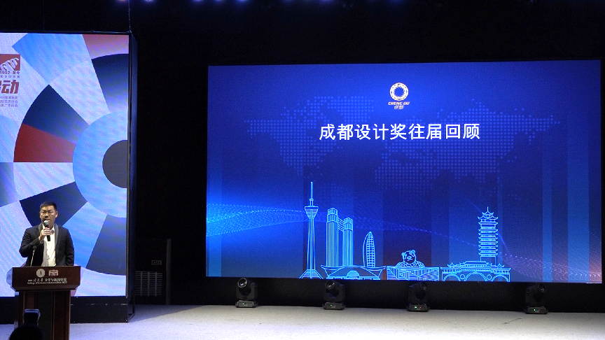 成都传媒集团新东方展览副总经理熊伟展示成都设计奖往届命题及作品