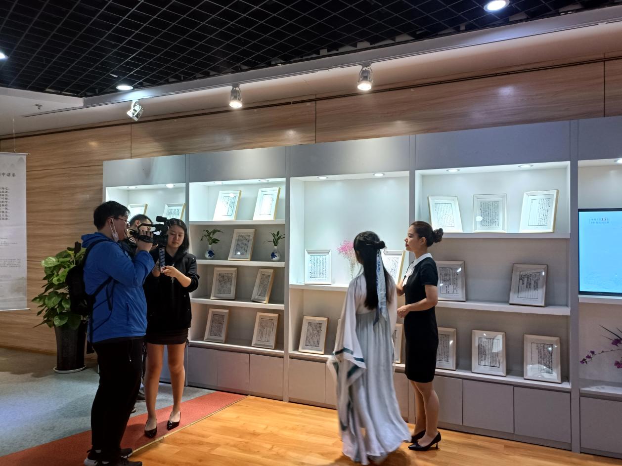 5月12日上午,“四川历代灾害文学文献的整理与传播”大创项目负责人、澳门网投官网2020级汉语言文学(基地班)本科学生杨巧如作为嘉宾参与了封面新闻联合四川省防灾减灾教育馆开展的全网直播,为大家导览了相关展区与文献材料;澳门网投官网四位学生代表也在直播现场进行了代表诗词的诵读表演。当天,各类直播渠道总计观看人次已超60万。