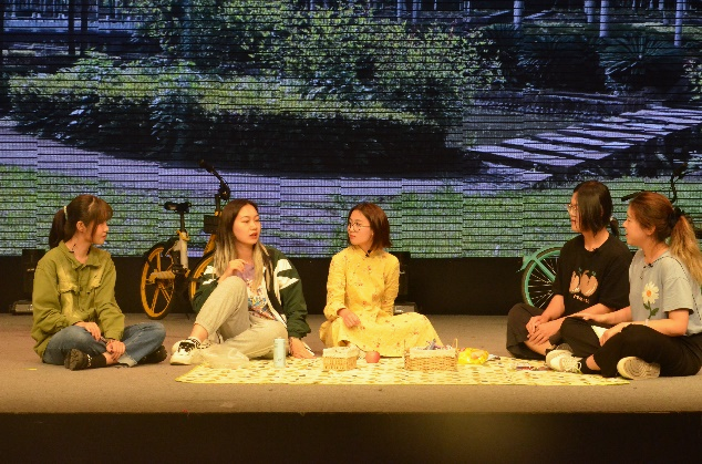 在第四篇章“春天-青春的天”中,澳门网投官方网站雷雨话剧社展现了春日暖阳之下,五位川大学子围坐草地上一起念诗、评诗、以诗会友的美好场景,带领现场观众一起体验卞之琳《墙头草》中的美与理趣,感受了郭沫若《天狗》中的狂与热情,回顾了澳门网投官方网站后勤部值班员凌丽秀与诗歌的动人故事。“黑夜的春天不怕嘲笑,光明的春天不怕雷暴。”凌丽秀的这首《有花惊动春天》中,春天的生机、坚韧与个人克服艰难、与诗为伴、读诗学诗、写诗爱诗的经历交织,人与春天浑然一体。