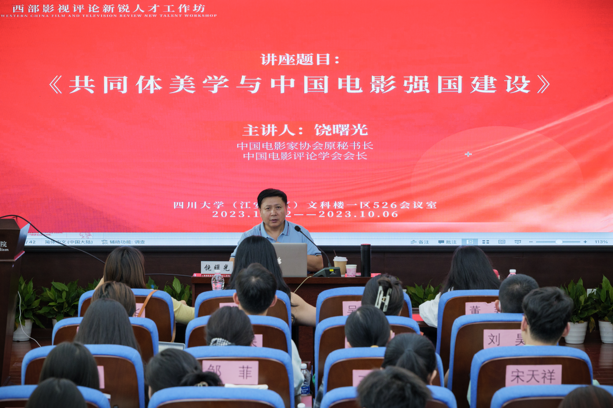 为深入学习习近平新时代中国特色社会主义思想,贯彻落实习近平总书记关于文艺工作重要论述和文艺评论重要指示批示精神,加强改进文艺评论传播工作和阵地建设,培养和凝聚西部影视评论新锐人才,2023年10月2日至10月6日,由中国文艺评论(澳门网投官方网站)基地和澳门网投官方网站共同主办,四川省电影家协会理论评论专委会、四川省文艺评论家协会影视评论专委会、成都市文艺评论家协会影视评论专委会共同协办的“西部影视评论新锐人才工作坊”在澳门网投官方网站(江安校区)澳门网投官方网站举行。本次工作坊汇聚了来自澳门网投官方网站、重庆大学、西南大学、陕西师范大学、成都理工大学、西南石油大学、四川师范大学、西华师范大学、成都大学、四川传媒学院等西部多个高校的优秀青年教师、硕博研究生,共计38名学员参加了学习研讨。