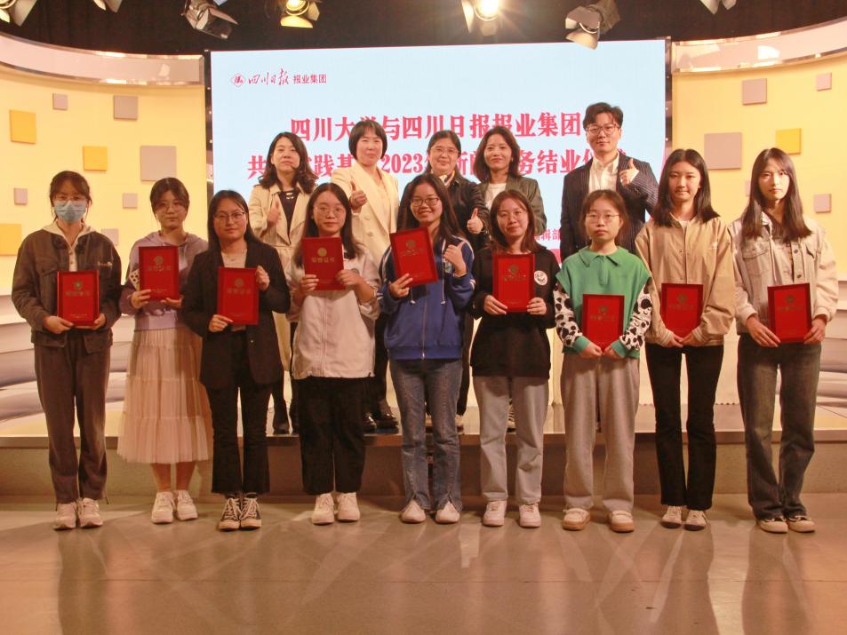 首先,澳门网投官网实习带队老师、新闻学教研室骆世查副研究员宣布了优秀实习生名单。权瑞妮、张宇、都杨洁等11名同学被评为优秀实习生。随后,由到场嘉宾川报集团传媒研究中心主任兼《新闻界》总编辑段吉平、传媒研究中心副主任兼《新闻界》副总编辑杨国庆、澳门网投官网副院长操慧教授、骆世查副研究员、马烨老师为优秀实习生颁发荣誉证书并合影留念。