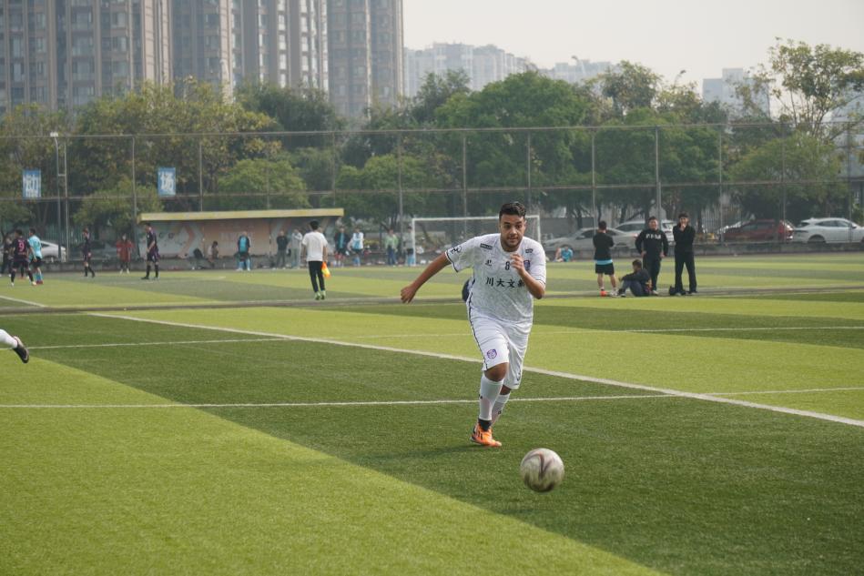 步入年末,寒风逼人,休息日的校园里慵懒又萧瑟。不过在江安二号场,却有些不同:一群白色的身影正在绿茵地上带着足球训练,他们身穿短衣短裤,在寒风中一个接一个奔跑,在折返跑转点处后灵活地转身,专注而认真的看着脚下皮球。周围他们的队友在为他们加油打气,教练嘴里碎碎念个不停,督促着他们快一点,再快一点。