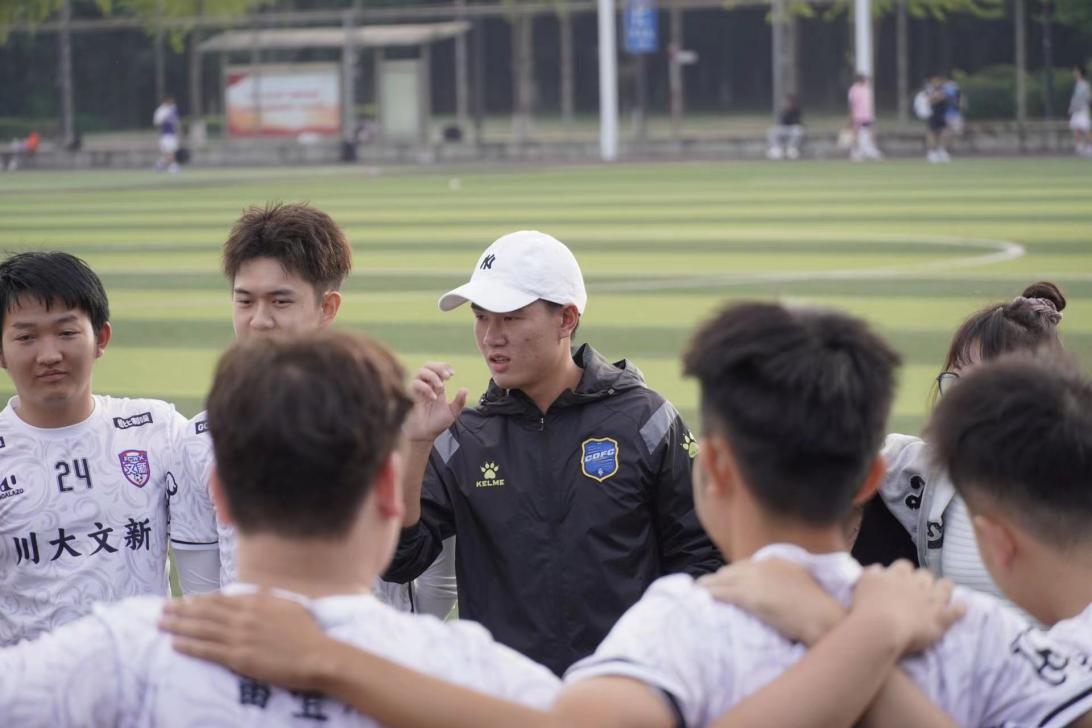 足球诗人贺炜在解说时提到罗曼•罗兰说过的一句话:“这个世界上只有一种真正的英雄主义,那就是认清生活的真相并且仍然热爱它。”在球场之外,文新队员们也是一群热爱生活的川大学子。在22级文新球员所在的4舍,经常能看到他们相互“串门”:跑到队友宿舍打游戏,一起在客厅看球,借着下楼洗衣服的机会打个招呼,顺便聊会天。而在专业学习过程中,他们一起组成课程的学习小组共同进步,在今年的大创项目申报中,卢龙阳和包都乐两位队员还将自己的所学专业与足球知识相结合,与其他成员一起申报了贵州“村超”足球联赛的新媒体传播研究项目。球场上他们是一起拼搏的队友,球场外他们是共同生活的朋友,一起学习的同学。