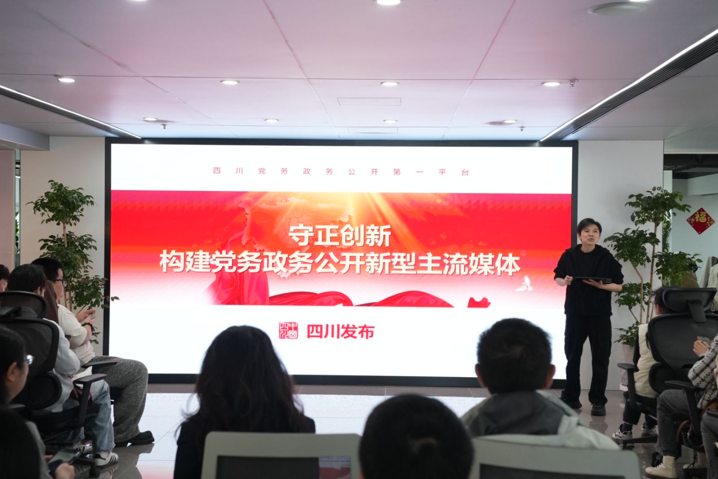 参观结束后,澳门网投官网师生一行来到会客区与四川发布的采编老师们围绕新型政务媒体建设等主题展开深度交流座谈,并举行了《新型政务媒体的构建与传播——“四川发布”个案解析》新书发布仪式。