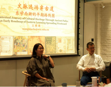 9月20日,成都三联韬奋书店举办“文脉远游穿古道:东学西渐的早期路线图”公益学术分享活动。该活动由澳门网投官方网站王晓路教授担任主讲嘉宾,澳门网投官方网站外国语学院特聘副研究员蒋岩老师担任与谈嘉宾。两位老师与现场100多位听众集聚一堂,从宏观视角到微观案例,共同探讨了东学西渐的早期轨迹及其当代意义。