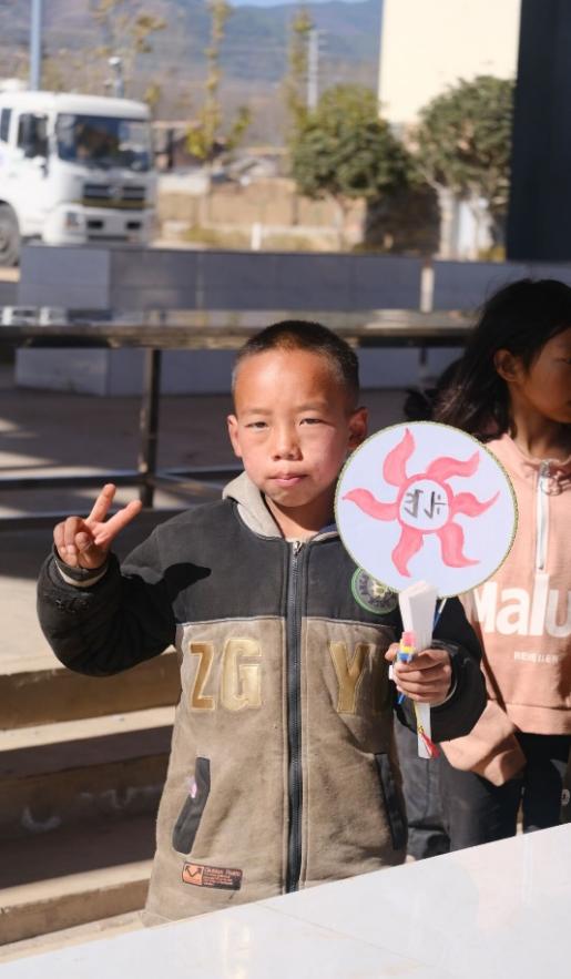 在访谈之外,团队成员还与社区儿童一起品开展了彝族绘画活动。小朋友们手持团扇或折扇,用颜料将自己的所思所想所感以绘画作品的形式呈现,具有民族风情的纯真童心跃然纸上。