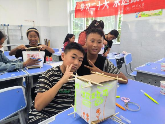 此外,团队还开展了丰富多样的趣味课程。手工课上,从骨架搭建到宣纸装饰,孩子们用自己的双手领略灯花之美;实验课上,从大气原理到喷泉现象,老师们用一个个有趣的现象讲述科学原理;地理课上,从各地美食到全国地图,生动的图片、视频拓宽了孩子们大山之外的视野。