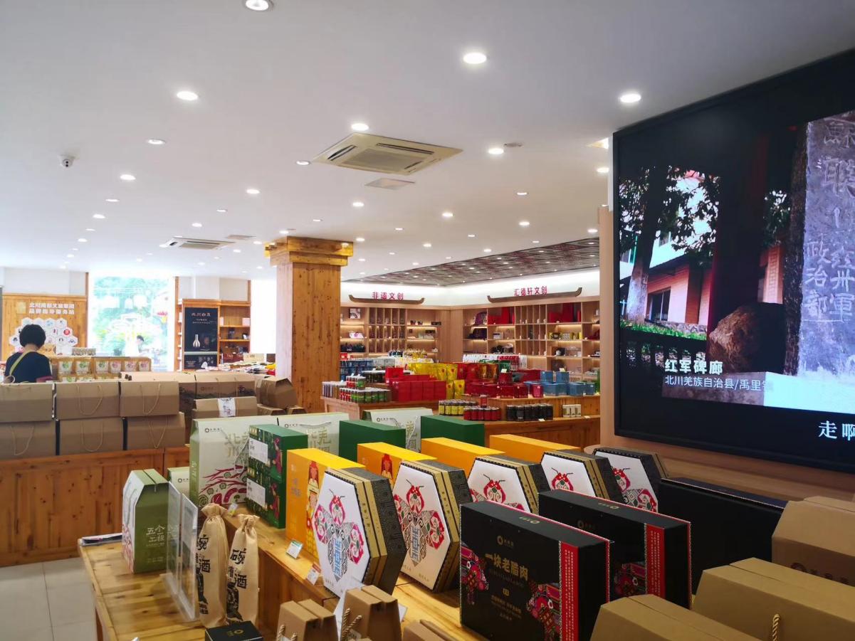 小队还采访到了一家以“企业直播间”为特色的创新店。询问该店的店员得知该店也同样是处于直播带货的起步阶段,在现阶段仍然是实体店的销量更佳,并主要就依靠实体店来保障销量。线上销量尚不可观的现状也促使该店在尝试探索如何才能真正达成线上线下双线发展。参观完店铺,我们感觉,相较于上一家店主要以茶叶为核心产品,该家店铺的产品明显更加丰富多元:羊肚菌、马槽酒、北川老腊肉、汇德轩文创、非遗文创、各色荞麦小吃零食……店员也表示,该店所选择的商品都是以市场为导向的,经过淘汰后保留了更贴合市场需求的北川特产。“旺季主要是在下半年,特别是十月之后,节假日较多,送礼的需求大。过年前还会有一些企业团购年货。其他时间都是一些散客为主,销售量并不大。”当地所打造的旅游点还不算成熟,能吸引来的游客的确有限,而游客又主要就集中于周围地区,且淡旺季游客量差距相当显著。