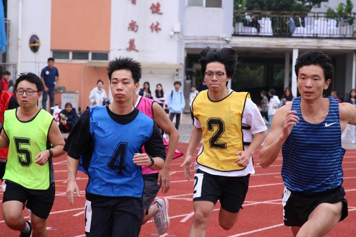 男子1500米竞赛中唐印同学(右一)与其他同学竞技