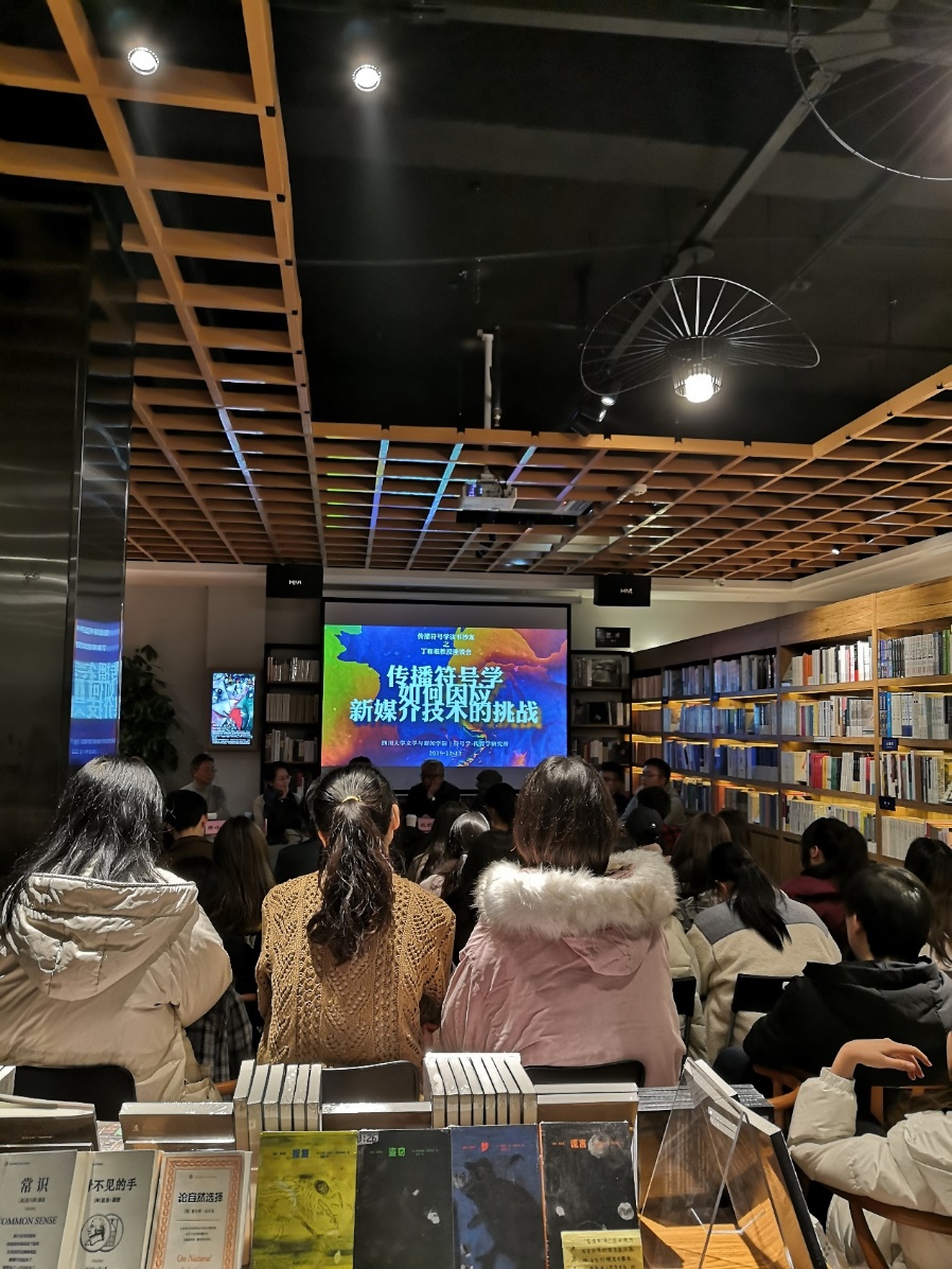 2019年12月13日,澳门网投官网在成都库闻书店举办了传播符号学读书沙龙。此次沙龙以“传播符号学如何因应新媒介技术的挑战”为主题,学院师生积极参与并作相关发言和讨论。南京大学丁和根教授作为主讲嘉宾,澳门网投官网赵毅衡教授、蒋晓丽教授、陆正兰教授、唐小林教授、胡易容教授、饶广祥副教授以及电子科技大学魏全凤副教授、四川师范大学张骋副教授、西华大学何一杰博士等共同作为对谈嘉宾参与了此次沙龙。